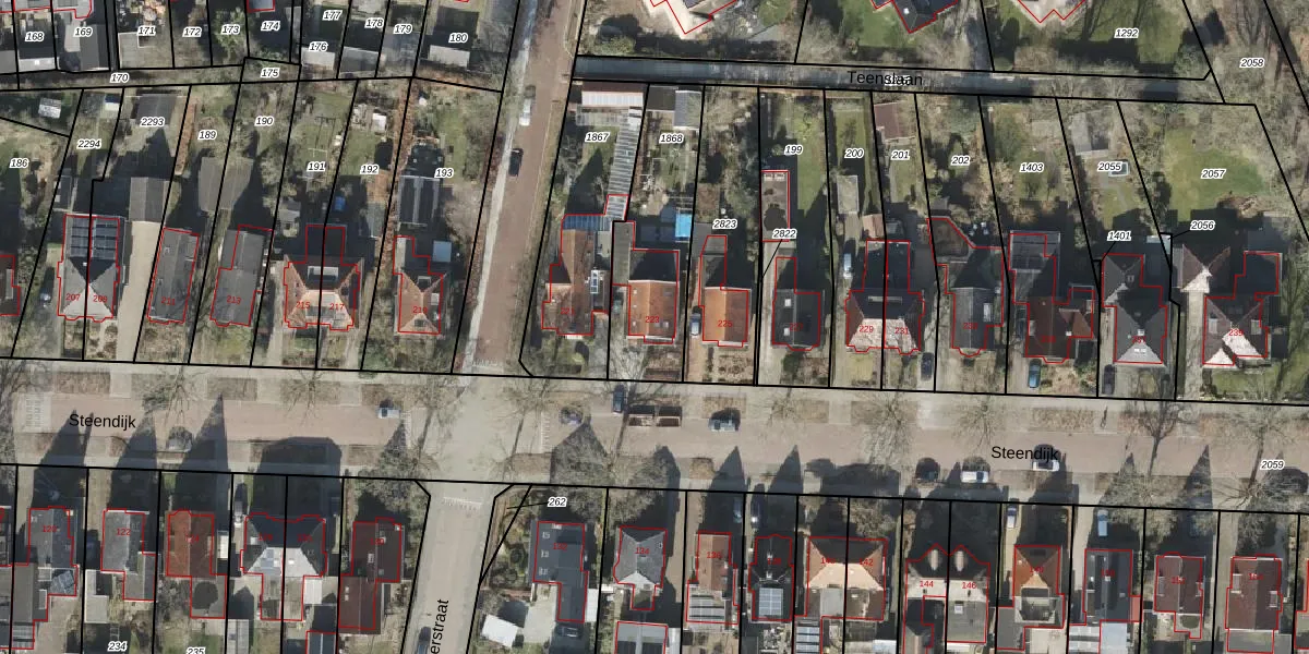Het perceel waarop Steendijk 223 staat heeft een oppervlakte van 489 m². Dit is een groot perceel. De perceeloppervlakte wordt geregistreerd door het Kadaster. Gedetailleerde informatie over de maten van dit perceel kunt u vinden in het rapport Kadastrale kaart met maatvoering van Steendijk 223.