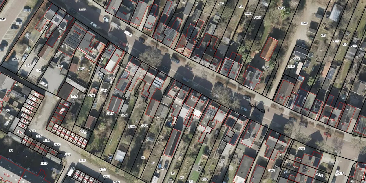 Het perceel waarop Steendijk 62 staat heeft een oppervlakte van 322 m². Dit is een groot perceel. De perceeloppervlakte wordt geregistreerd door het Kadaster. Gedetailleerde informatie over de maten van dit perceel kunt u vinden in het rapport Kadastrale kaart met maatvoering van Steendijk 62.