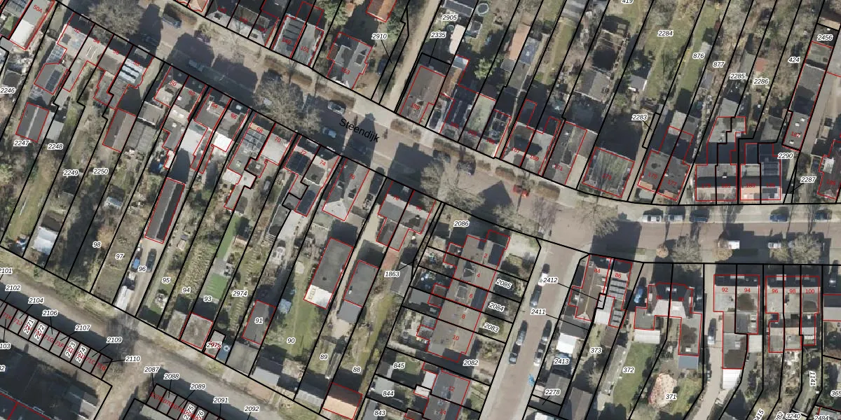 Het perceel waarop Steendijk 80 staat heeft een oppervlakte van 457 m². Dit is een groot perceel. De perceeloppervlakte wordt geregistreerd door het Kadaster. Gedetailleerde informatie over de maten van dit perceel kunt u vinden in het rapport Kadastrale kaart met maatvoering van Steendijk 80.