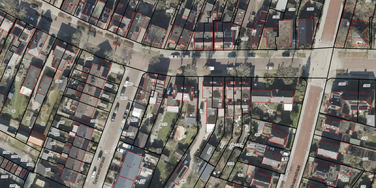Het perceel waarop Steendijk 90 staat heeft een oppervlakte van 654 m². Dit is een groot perceel. De perceeloppervlakte wordt geregistreerd door het Kadaster. Gedetailleerde informatie over de maten van dit perceel kunt u vinden in het rapport Kadastrale kaart met maatvoering van Steendijk 90.