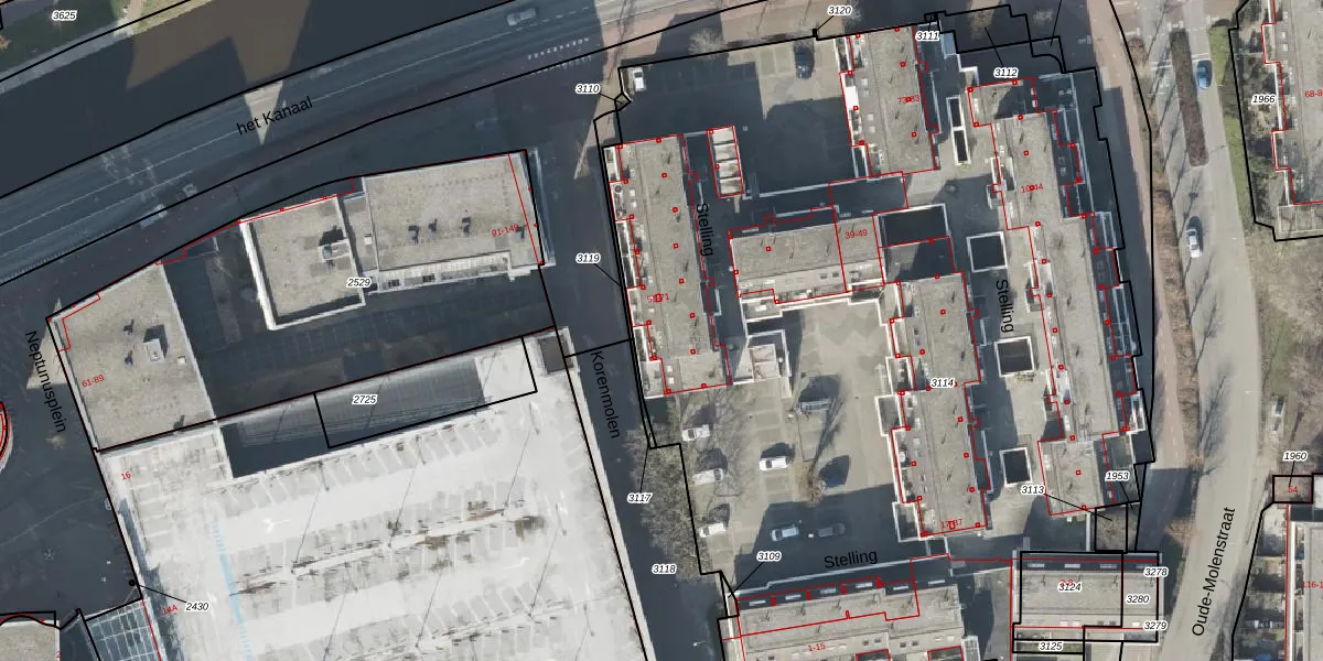 Het perceel waarop Stelling 55 staat heeft een oppervlakte van 6547 m². Dit is een zeer groot perceel. De perceeloppervlakte wordt geregistreerd door het Kadaster. Gedetailleerde informatie over de maten van dit perceel kunt u vinden in het rapport Kadastrale kaart met maatvoering van Stelling 55.