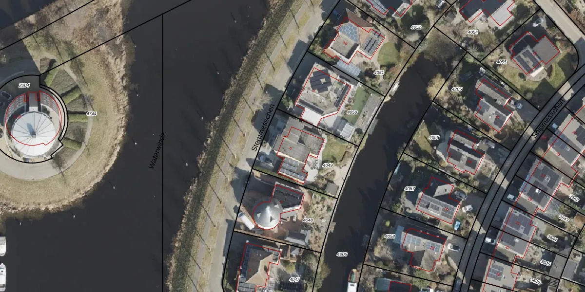 Gebruik de zoekbalk of klik op een perceel voor informatie over de adressen binnen dit perceel.