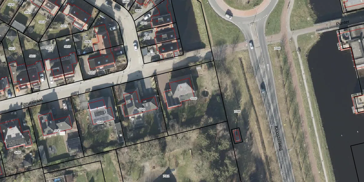 Gebruik de zoekbalk of klik op een perceel voor informatie over de adressen binnen dit perceel.