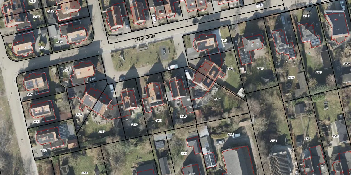 Gebruik de zoekbalk of klik op een perceel voor informatie over de adressen binnen dit perceel.