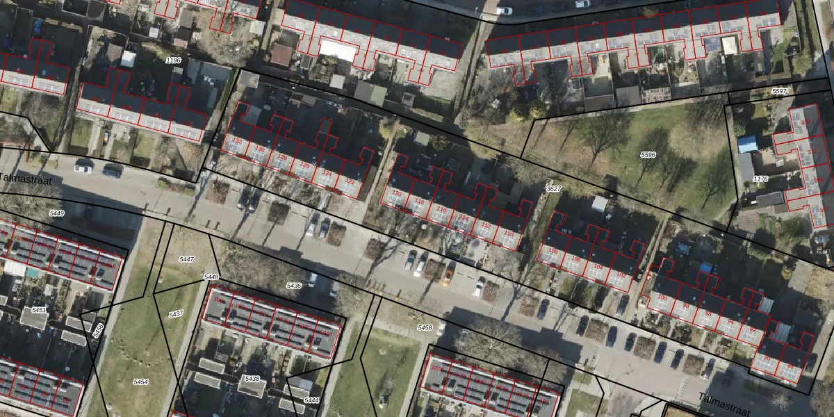 Het perceel waarop Talmastraat 118 staat heeft een oppervlakte van 4396 m². Dit is een zeer groot perceel. De perceeloppervlakte wordt geregistreerd door het Kadaster. Gedetailleerde informatie over de maten van dit perceel kunt u vinden in het rapport Kadastrale kaart met maatvoering van Talmastraat 118.