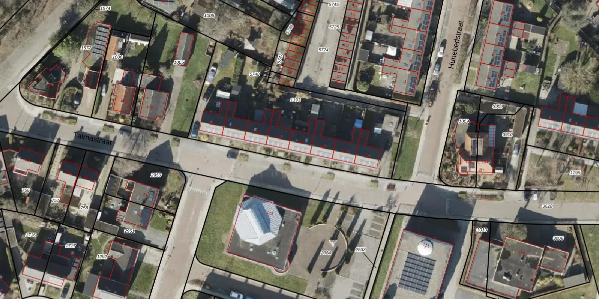 Het perceel waarop Talmastraat 164 staat heeft een oppervlakte van 1792 m². Dit is een zeer groot perceel. De perceeloppervlakte wordt geregistreerd door het Kadaster. Gedetailleerde informatie over de maten van dit perceel kunt u vinden in het rapport Kadastrale kaart met maatvoering van Talmastraat 164.