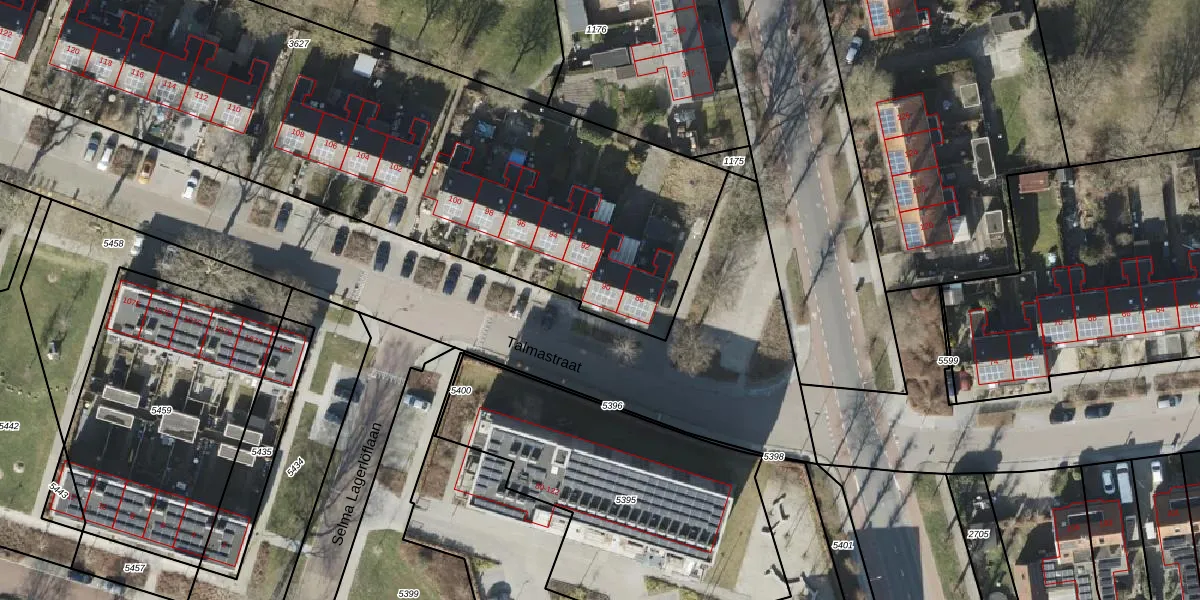 Het perceel waarop Talmastraat 90 staat heeft een oppervlakte van 4396 m². Dit is een zeer groot perceel. De perceeloppervlakte wordt geregistreerd door het Kadaster. Gedetailleerde informatie over de maten van dit perceel kunt u vinden in het rapport Kadastrale kaart met maatvoering van Talmastraat 90.