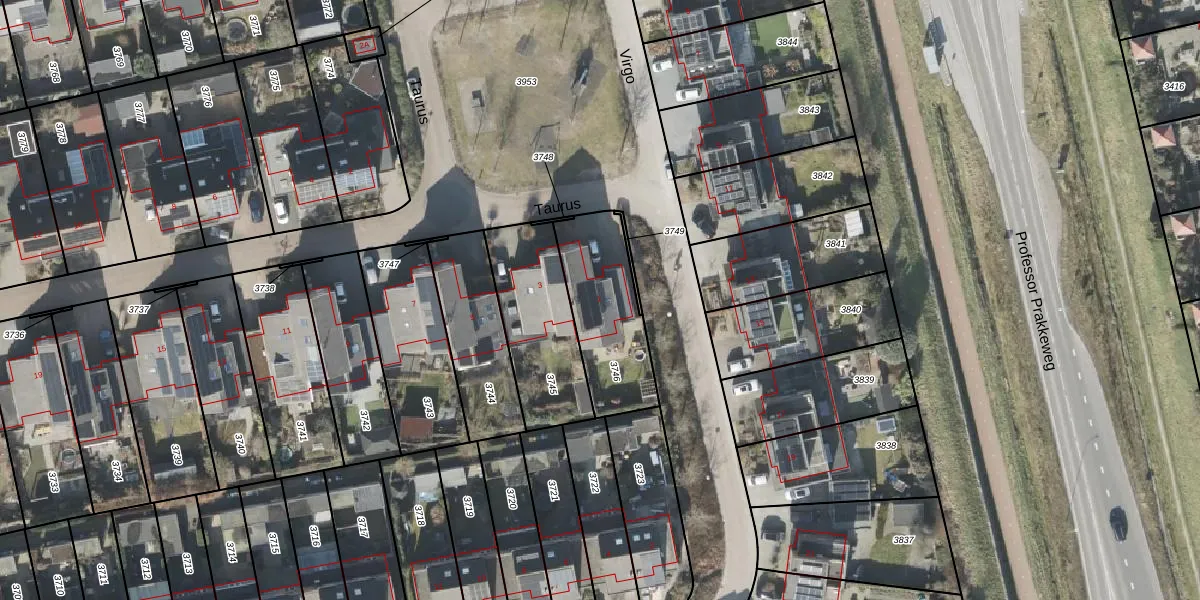 Het perceel waarop Taurus 1 staat heeft een oppervlakte van 373 m². Dit is een groot perceel. De perceeloppervlakte wordt geregistreerd door het Kadaster. Gedetailleerde informatie over de maten van dit perceel kunt u vinden in het rapport Kadastrale kaart met maatvoering van Taurus 1.