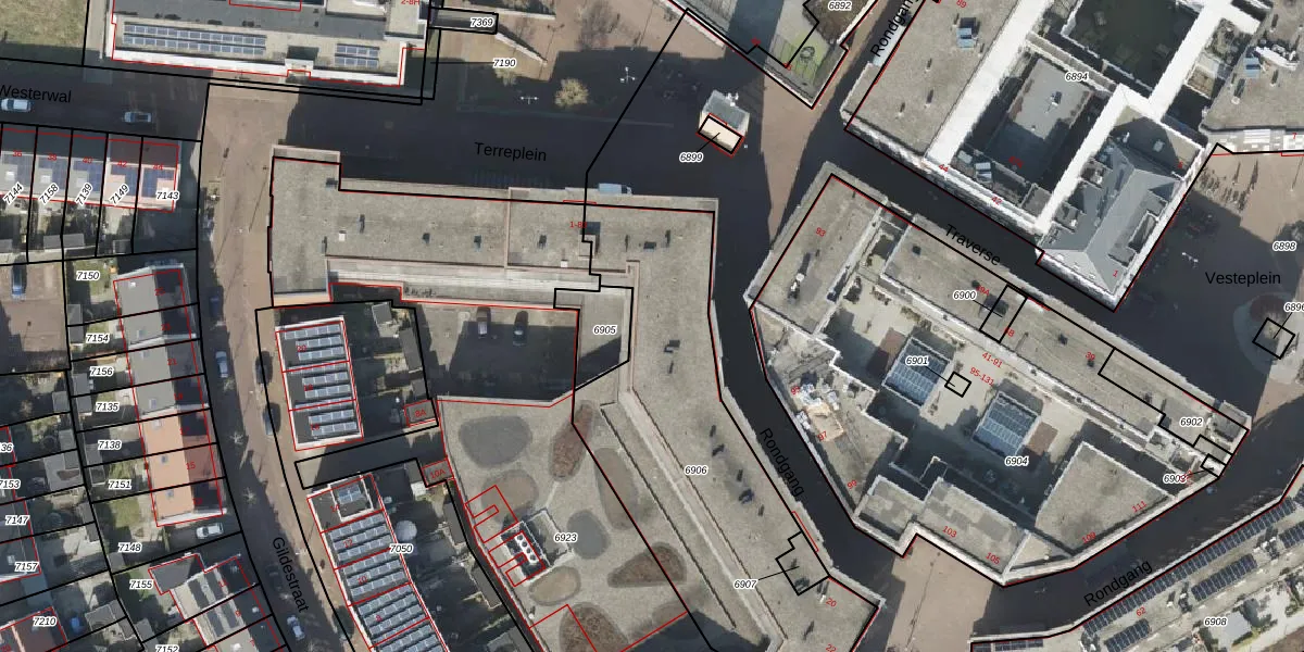 Het perceel waarop Terreplein 23 staat heeft een oppervlakte van 1508 m². Dit is een zeer groot perceel. De perceeloppervlakte wordt geregistreerd door het Kadaster. Gedetailleerde informatie over de maten van dit perceel kunt u vinden in het rapport Kadastrale kaart met maatvoering van Terreplein 23.