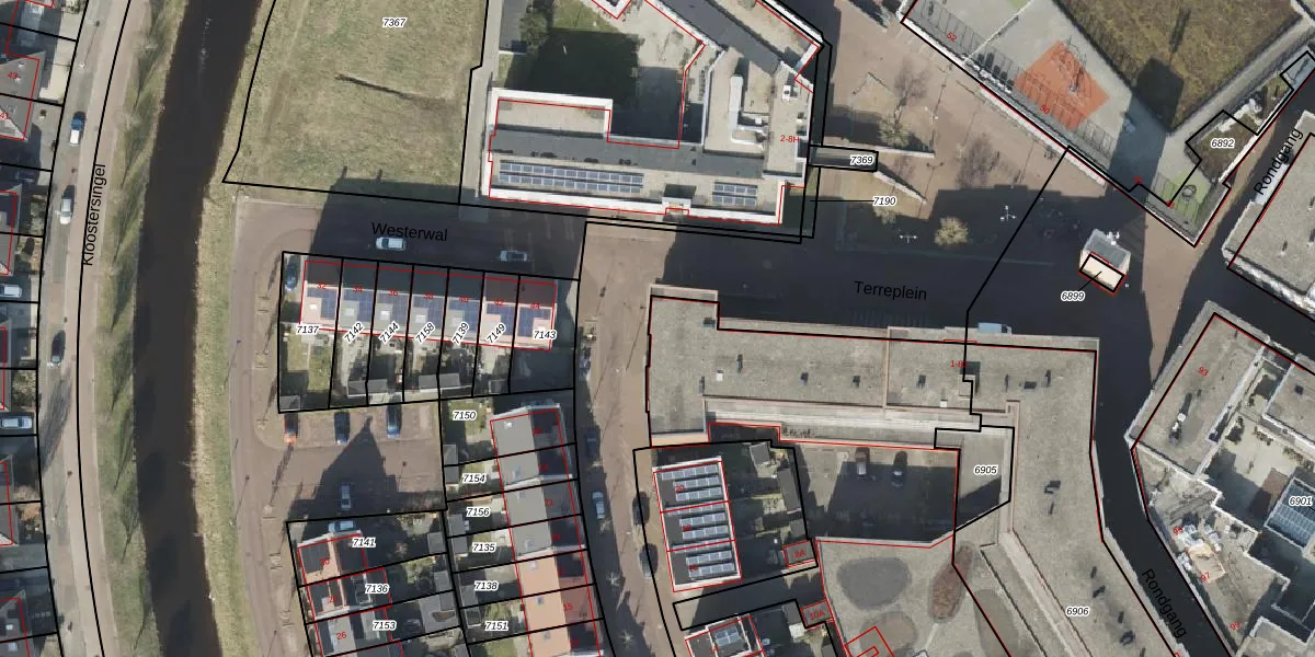 Het perceel waarop Terreplein 65 staat heeft een oppervlakte van 3360 m². Dit is een zeer groot perceel. De perceeloppervlakte wordt geregistreerd door het Kadaster. Gedetailleerde informatie over de maten van dit perceel kunt u vinden in het rapport Kadastrale kaart met maatvoering van Terreplein 65.