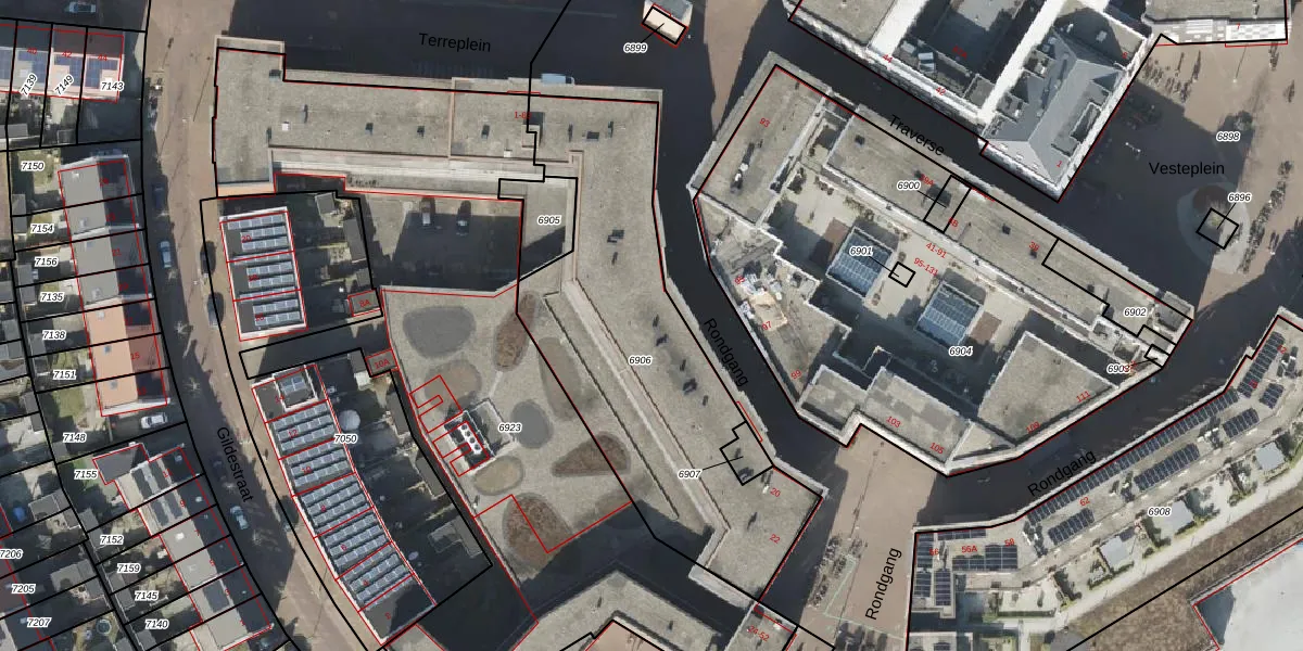 Het perceel waarop Terreplein 67 staat heeft een oppervlakte van 1508 m². Dit is een zeer groot perceel. De perceeloppervlakte wordt geregistreerd door het Kadaster. Gedetailleerde informatie over de maten van dit perceel kunt u vinden in het rapport Kadastrale kaart met maatvoering van Terreplein 67.