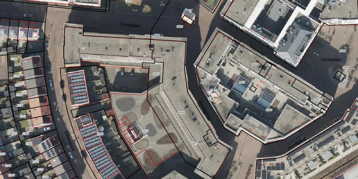 Het perceel waarop Terreplein 69 staat heeft een oppervlakte van 1508 m². Dit is een zeer groot perceel. De perceeloppervlakte wordt geregistreerd door het Kadaster. Gedetailleerde informatie over de maten van dit perceel kunt u vinden in het rapport Kadastrale kaart met maatvoering van Terreplein 69.