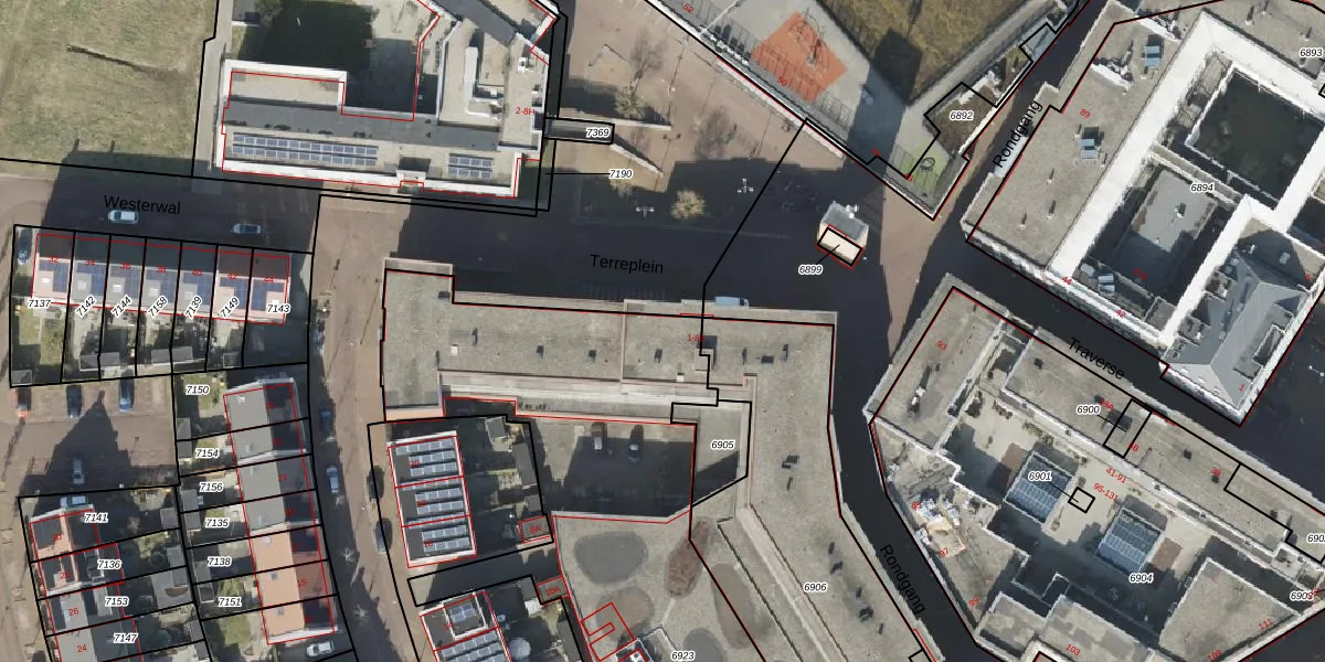 Het perceel waarop Terreplein 7 staat heeft een oppervlakte van 3360 m². Dit is een zeer groot perceel. De perceeloppervlakte wordt geregistreerd door het Kadaster. Gedetailleerde informatie over de maten van dit perceel kunt u vinden in het rapport Kadastrale kaart met maatvoering van Terreplein 7.