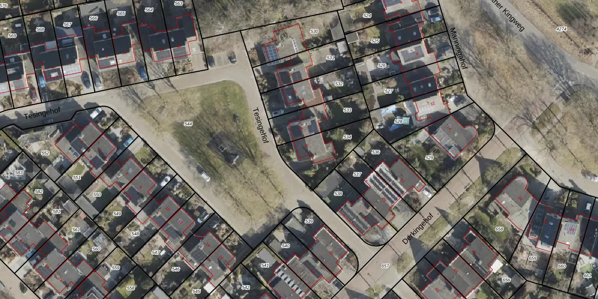 Het perceel waarop Tesingehof 27 staat heeft een oppervlakte van 354 m². Dit is een groot perceel. De perceeloppervlakte wordt geregistreerd door het Kadaster. Gedetailleerde informatie over de maten van dit perceel kunt u vinden in het rapport Kadastrale kaart met maatvoering van Tesingehof 27.