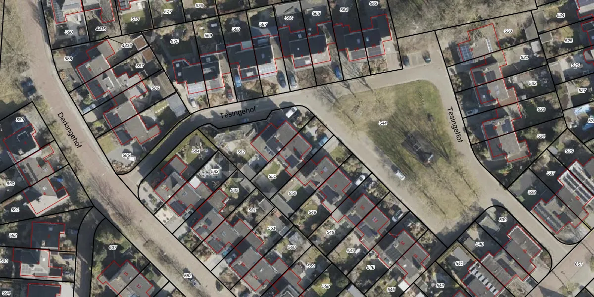 Het perceel waarop Tesingehof 4 staat heeft een oppervlakte van 279 m². Dit is een middelgroot perceel. De perceeloppervlakte wordt geregistreerd door het Kadaster. Gedetailleerde informatie over de maten van dit perceel kunt u vinden in het rapport Kadastrale kaart met maatvoering van Tesingehof 4.