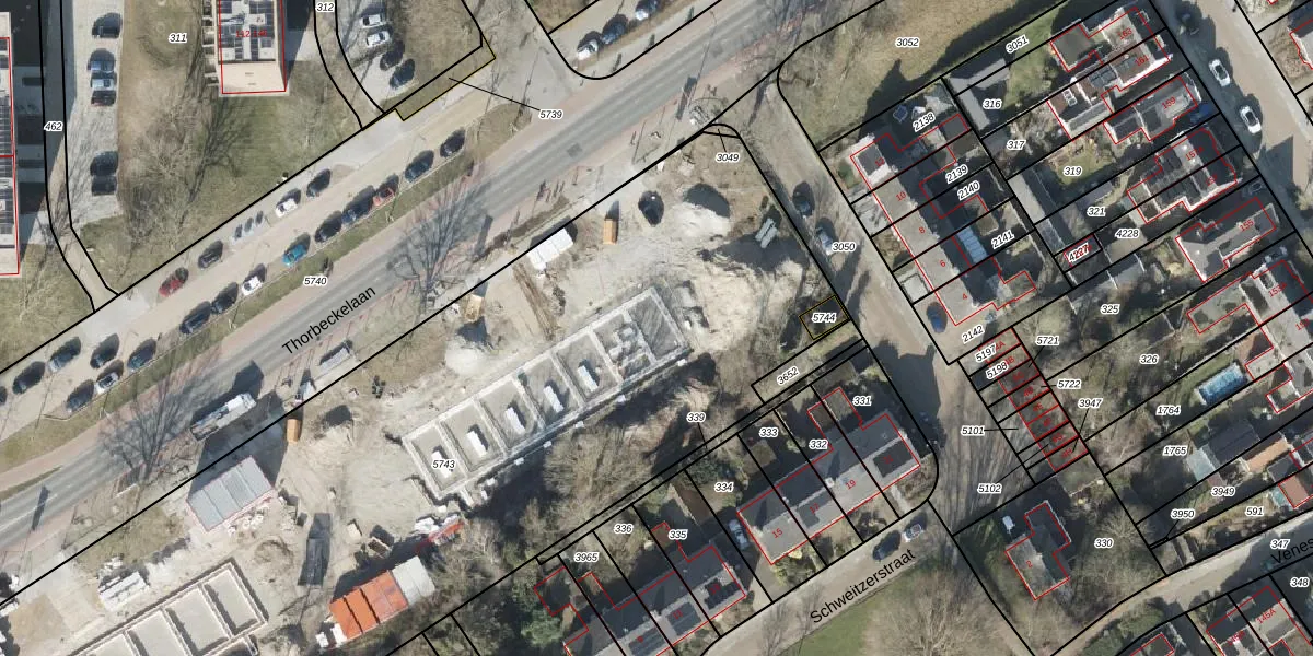 Het perceel waarop Thorbeckelaan 113 staat heeft een oppervlakte van 5824 m². Dit is een zeer groot perceel. De perceeloppervlakte wordt geregistreerd door het Kadaster. Gedetailleerde informatie over de maten van dit perceel kunt u vinden in het rapport Kadastrale kaart met maatvoering van Thorbeckelaan 113.