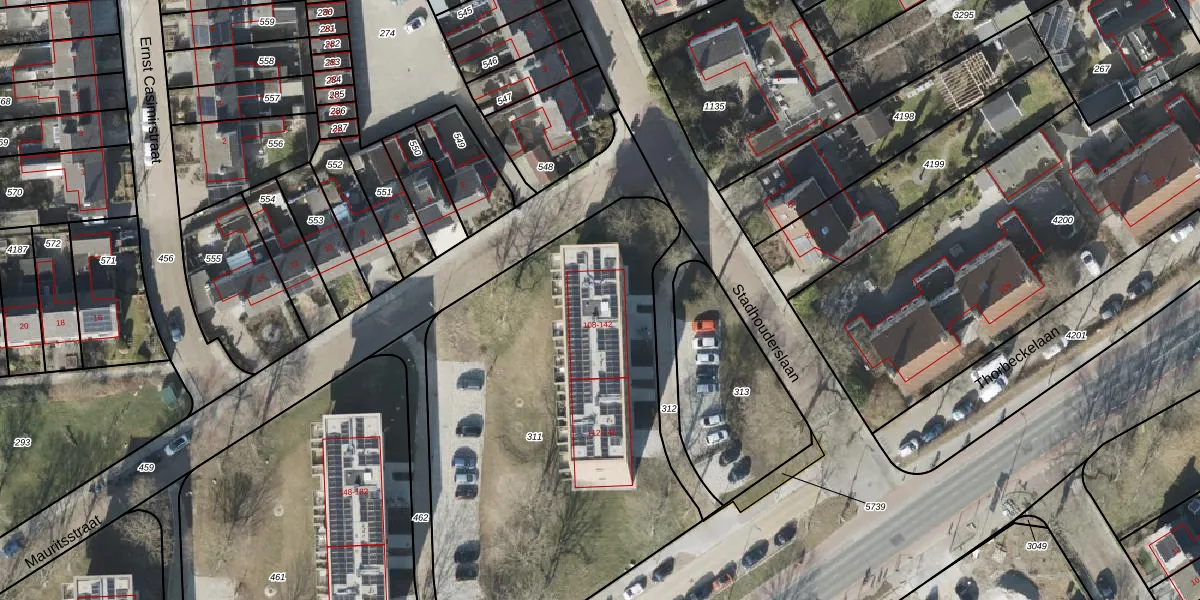 Thorbeckelaan 124 is gelegen op kadastraal perceel ASN00T311. Deze kadastrale aanduiding is uniek en wordt gebruikt door het Kadaster om eigendomsrechten en andere zakelijke rechten vast te leggen. Het perceel maakt onderdeel uit van de kadastrale gemeente Assen.