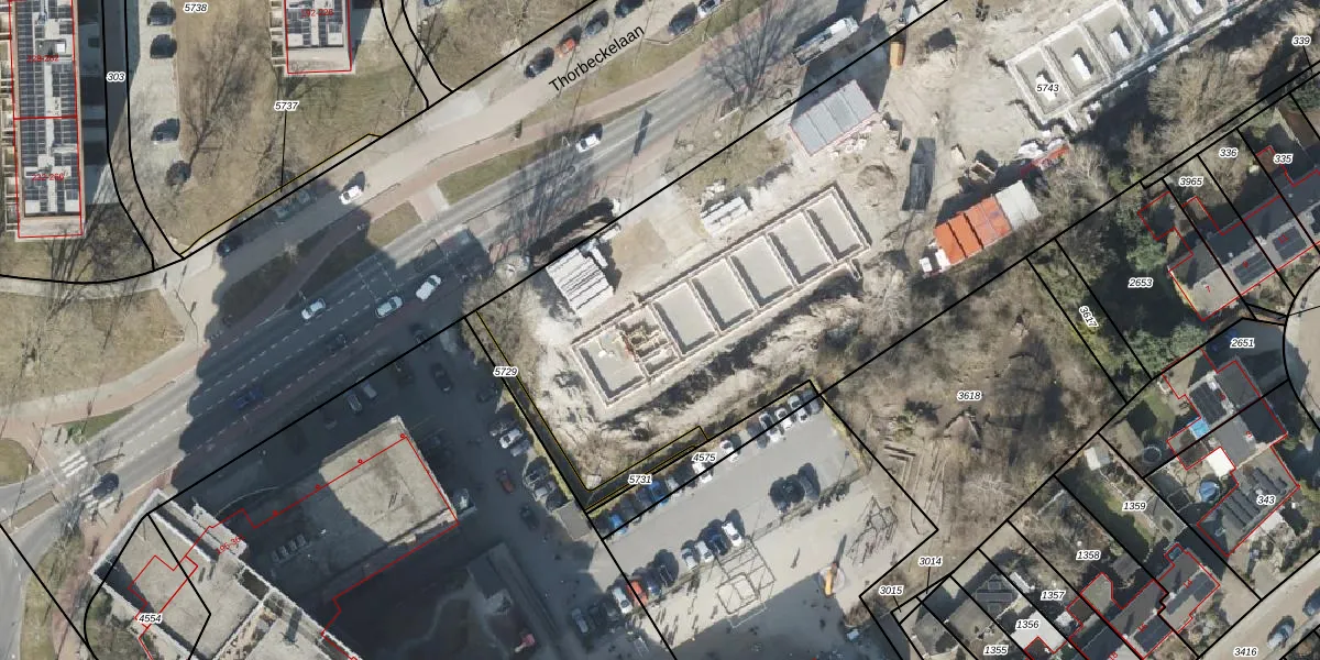 Het perceel waarop Thorbeckelaan 129-D staat heeft een oppervlakte van 5824 m². Dit is een zeer groot perceel. De perceeloppervlakte wordt geregistreerd door het Kadaster. Gedetailleerde informatie over de maten van dit perceel kunt u vinden in het rapport Kadastrale kaart met maatvoering van Thorbeckelaan 129-D.