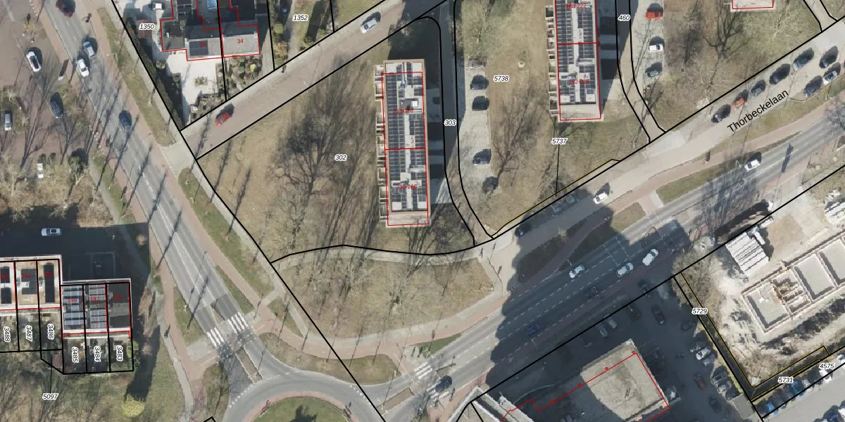 Het perceel waarop Thorbeckelaan 234 staat heeft een oppervlakte van 2290 m². Dit is een zeer groot perceel. De perceeloppervlakte wordt geregistreerd door het Kadaster. Gedetailleerde informatie over de maten van dit perceel kunt u vinden in het rapport Kadastrale kaart met maatvoering van Thorbeckelaan 234.