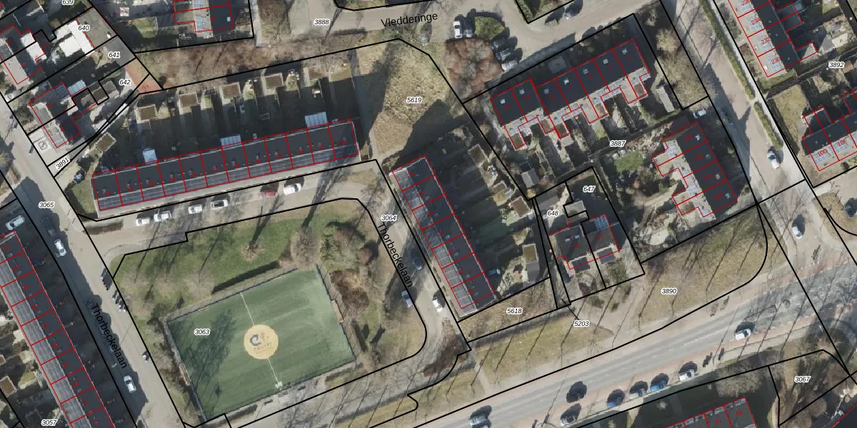 Het perceel waarop Thorbeckelaan 24 staat heeft een oppervlakte van 3333 m². Dit is een zeer groot perceel. De perceeloppervlakte wordt geregistreerd door het Kadaster. Gedetailleerde informatie over de maten van dit perceel kunt u vinden in het rapport Kadastrale kaart met maatvoering van Thorbeckelaan 24.