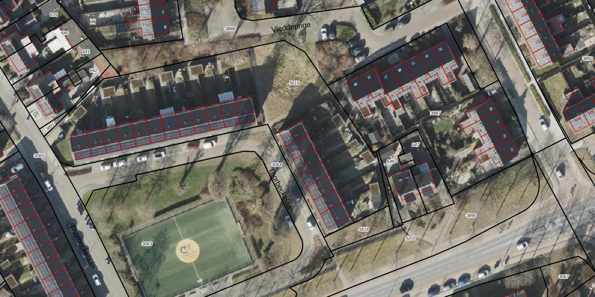 Het perceel waarop Thorbeckelaan 26 staat heeft een oppervlakte van 3333 m². Dit is een zeer groot perceel. De perceeloppervlakte wordt geregistreerd door het Kadaster. Gedetailleerde informatie over de maten van dit perceel kunt u vinden in het rapport Kadastrale kaart met maatvoering van Thorbeckelaan 26.