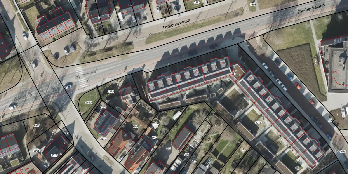 Het perceel waarop Thorbeckelaan 29-C staat heeft een oppervlakte van 3880 m². Dit is een zeer groot perceel. De perceeloppervlakte wordt geregistreerd door het Kadaster. Gedetailleerde informatie over de maten van dit perceel kunt u vinden in het rapport Kadastrale kaart met maatvoering van Thorbeckelaan 29-C.