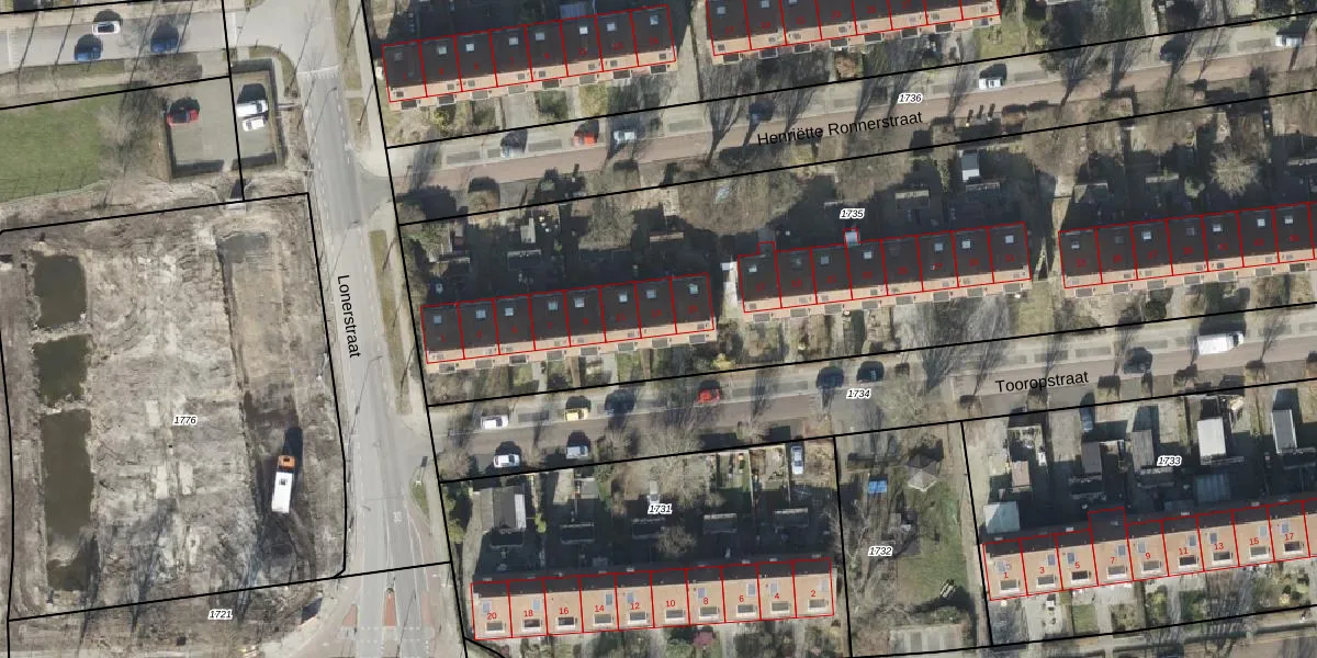 Het perceel waarop Tooropstraat 13 staat heeft een oppervlakte van 4379 m². Dit is een zeer groot perceel. De perceeloppervlakte wordt geregistreerd door het Kadaster. Gedetailleerde informatie over de maten van dit perceel kunt u vinden in het rapport Kadastrale kaart met maatvoering van Tooropstraat 13.