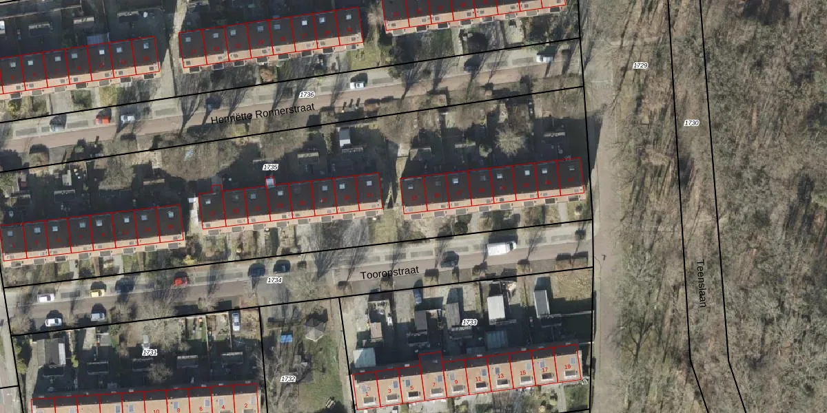 Het perceel waarop Tooropstraat 33 staat heeft een oppervlakte van 4379 m². Dit is een zeer groot perceel. De perceeloppervlakte wordt geregistreerd door het Kadaster. Gedetailleerde informatie over de maten van dit perceel kunt u vinden in het rapport Kadastrale kaart met maatvoering van Tooropstraat 33.