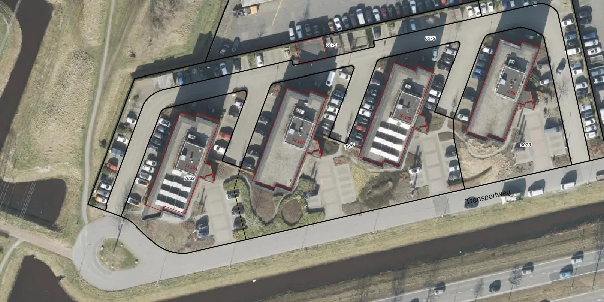 Het perceel waarop Transportweg 12 staat heeft een oppervlakte van 3176 m². Dit is een zeer groot perceel. De perceeloppervlakte wordt geregistreerd door het Kadaster. Gedetailleerde informatie over de maten van dit perceel kunt u vinden in het rapport Kadastrale kaart met maatvoering van Transportweg 12.