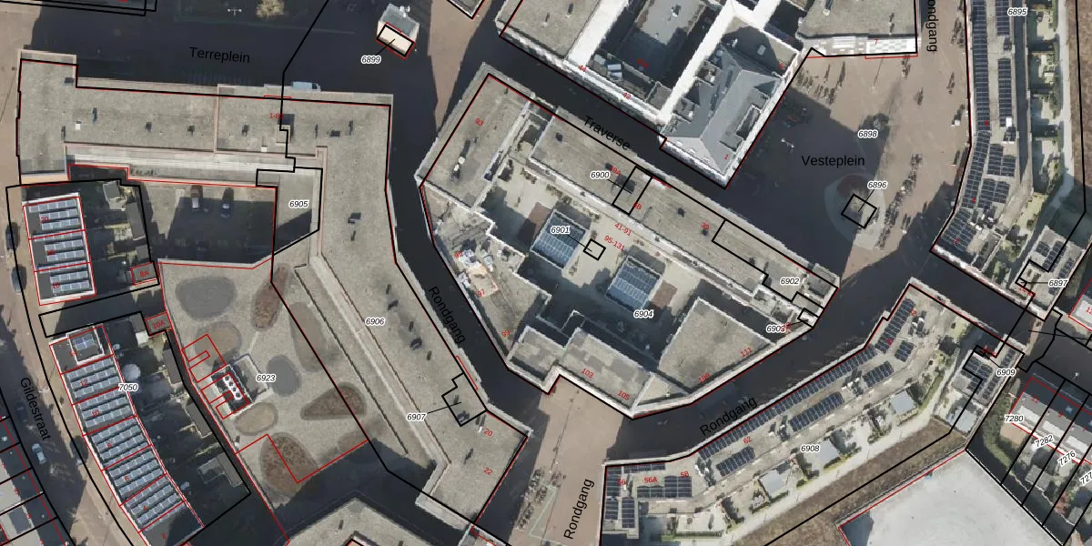 Het perceel waarop Traverse 115 staat heeft een oppervlakte van 2478 m². Dit is een zeer groot perceel. De perceeloppervlakte wordt geregistreerd door het Kadaster. Gedetailleerde informatie over de maten van dit perceel kunt u vinden in het rapport Kadastrale kaart met maatvoering van Traverse 115.