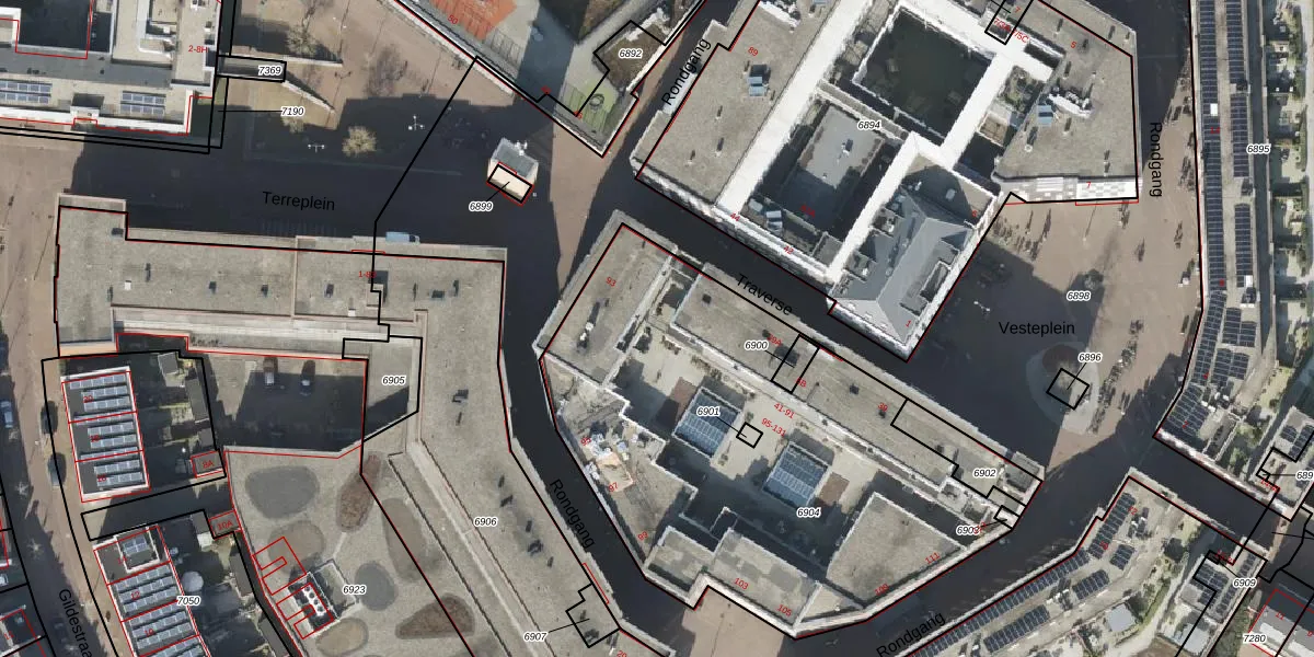 Het perceel waarop Traverse 123 staat heeft een oppervlakte van 2478 m². Dit is een zeer groot perceel. De perceeloppervlakte wordt geregistreerd door het Kadaster. Gedetailleerde informatie over de maten van dit perceel kunt u vinden in het rapport Kadastrale kaart met maatvoering van Traverse 123.
