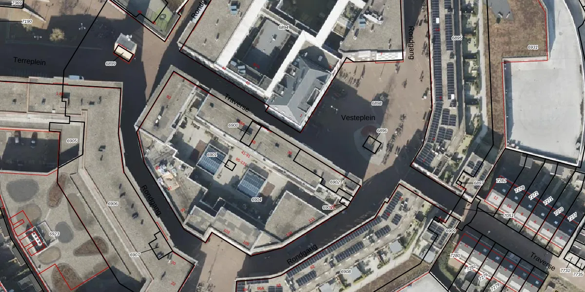 Het perceel waarop Traverse 39 staat heeft een oppervlakte van 2478 m². Dit is een zeer groot perceel. De perceeloppervlakte wordt geregistreerd door het Kadaster. Gedetailleerde informatie over de maten van dit perceel kunt u vinden in het rapport Kadastrale kaart met maatvoering van Traverse 39.