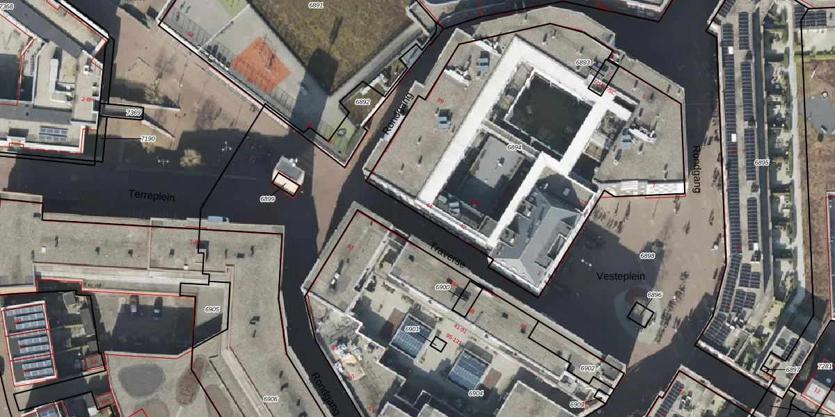 Het perceel waarop Traverse 44 staat heeft een oppervlakte van 2892 m². Dit is een zeer groot perceel. De perceeloppervlakte wordt geregistreerd door het Kadaster. Gedetailleerde informatie over de maten van dit perceel kunt u vinden in het rapport Kadastrale kaart met maatvoering van Traverse 44.
