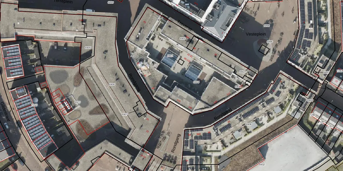 Het perceel waarop Traverse 57 staat heeft een oppervlakte van 2478 m². Dit is een zeer groot perceel. De perceeloppervlakte wordt geregistreerd door het Kadaster. Gedetailleerde informatie over de maten van dit perceel kunt u vinden in het rapport Kadastrale kaart met maatvoering van Traverse 57.