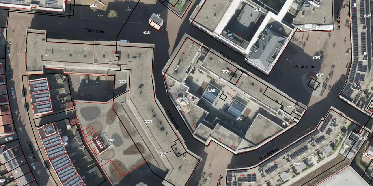 Het perceel waarop Traverse 63 staat heeft een oppervlakte van 2478 m². Dit is een zeer groot perceel. De perceeloppervlakte wordt geregistreerd door het Kadaster. Gedetailleerde informatie over de maten van dit perceel kunt u vinden in het rapport Kadastrale kaart met maatvoering van Traverse 63.