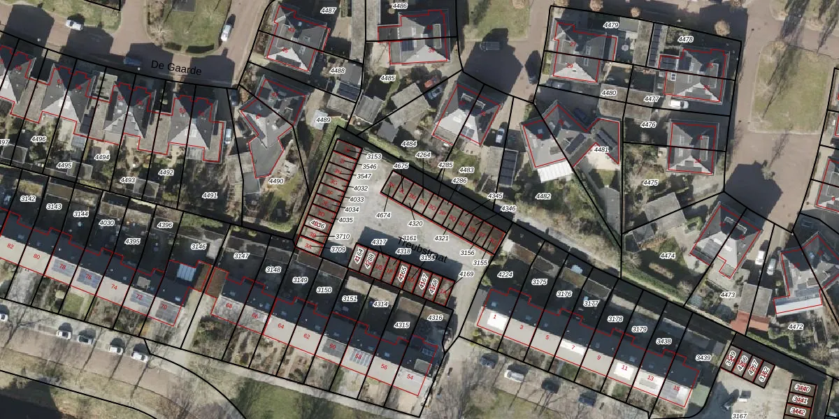 Gebruik de zoekbalk of klik op een perceel voor informatie over de adressen binnen dit perceel.