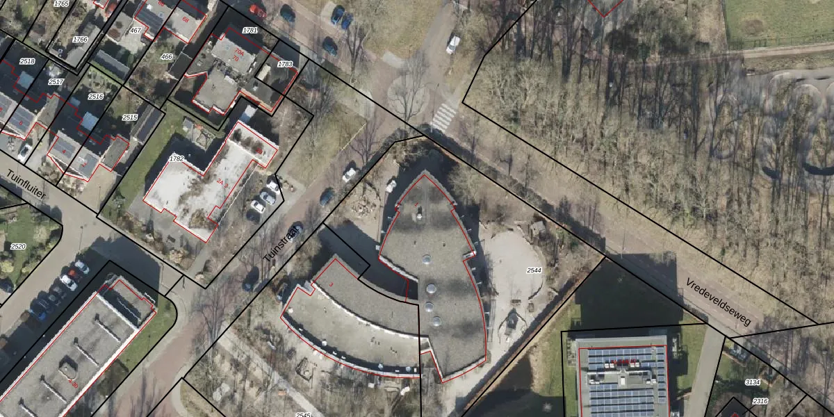 Gebruik de zoekbalk of klik op een perceel voor informatie over de adressen binnen dit perceel.