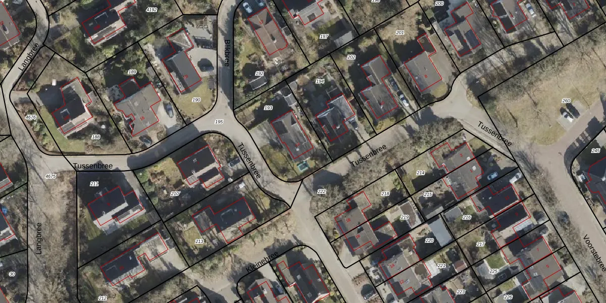 Het perceel waarop Tussenbree 14 staat heeft een oppervlakte van 582 m². Dit is een groot perceel. De perceeloppervlakte wordt geregistreerd door het Kadaster. Gedetailleerde informatie over de maten van dit perceel kunt u vinden in het rapport Kadastrale kaart met maatvoering van Tussenbree 14.