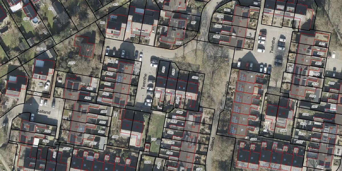 Gebruik de zoekbalk of klik op een perceel voor informatie over de adressen binnen dit perceel.