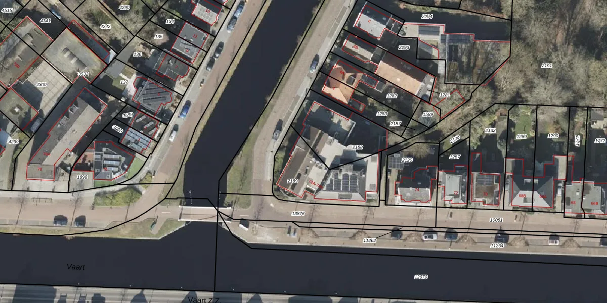 Vaart N.Z. 74-D is gelegen op kadastraal perceel ASN00S2189. Deze kadastrale aanduiding is uniek en wordt gebruikt door het Kadaster om eigendomsrechten en andere zakelijke rechten vast te leggen. Het perceel maakt onderdeel uit van de kadastrale gemeente Assen.