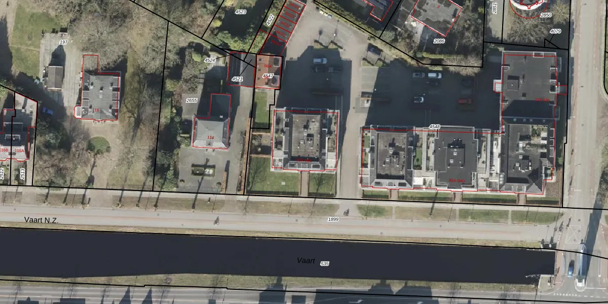 Het perceel waarop Vaart N.Z. 96-E staat heeft een oppervlakte van 5372 m². Dit is een zeer groot perceel. De perceeloppervlakte wordt geregistreerd door het Kadaster. Gedetailleerde informatie over de maten van dit perceel kunt u vinden in het rapport Kadastrale kaart met maatvoering van Vaart N.Z. 96-E.