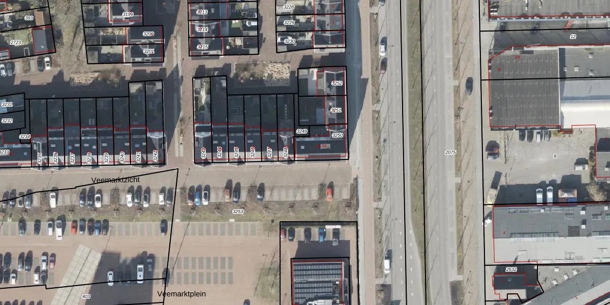 Het perceel waarop Veemarktzicht 35 staat heeft een oppervlakte van 186 m². Dit is een middelgroot perceel. De perceeloppervlakte wordt geregistreerd door het Kadaster. Gedetailleerde informatie over de maten van dit perceel kunt u vinden in het rapport Kadastrale kaart met maatvoering van Veemarktzicht 35.