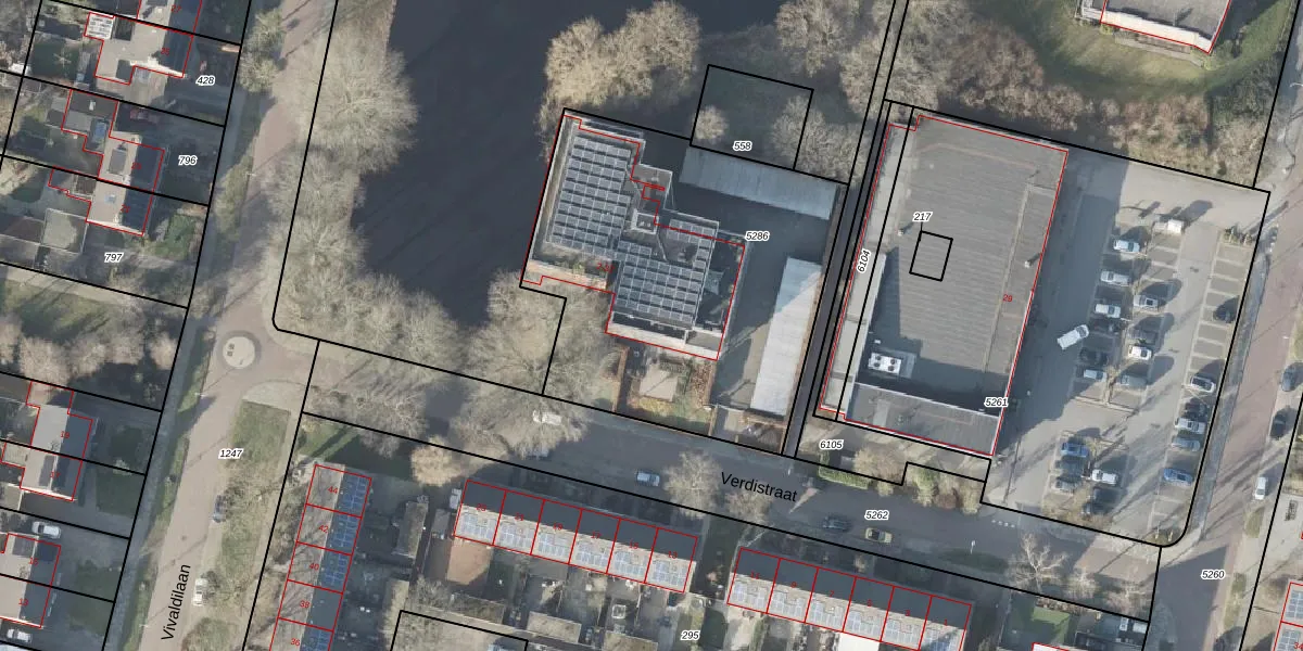 Het perceel waarop Verdistraat 16 staat heeft een oppervlakte van 1850 m². Dit is een zeer groot perceel. De perceeloppervlakte wordt geregistreerd door het Kadaster. Gedetailleerde informatie over de maten van dit perceel kunt u vinden in het rapport Kadastrale kaart met maatvoering van Verdistraat 16.