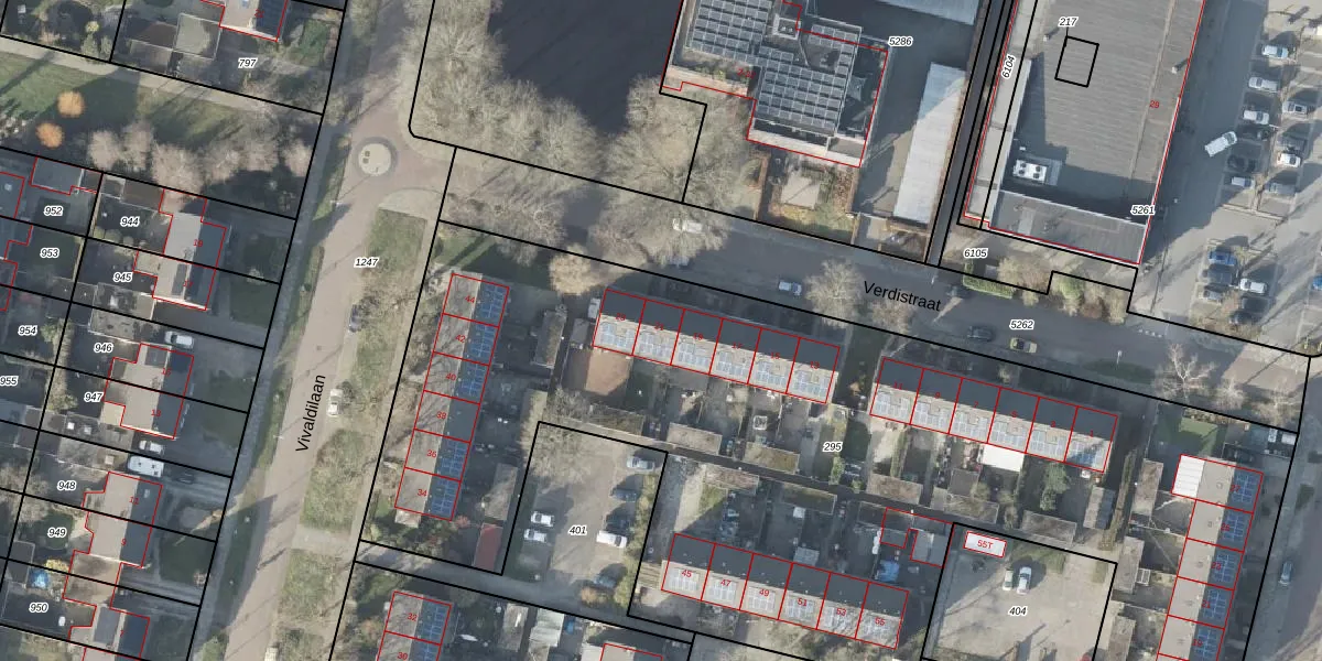 Het perceel waarop Verdistraat 21 staat heeft een oppervlakte van 5571 m². Dit is een zeer groot perceel. De perceeloppervlakte wordt geregistreerd door het Kadaster. Gedetailleerde informatie over de maten van dit perceel kunt u vinden in het rapport Kadastrale kaart met maatvoering van Verdistraat 21.