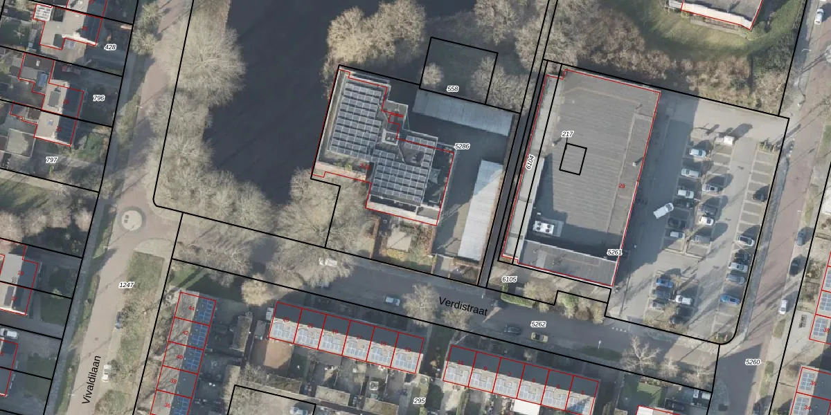Het perceel waarop Verdistraat 30 staat heeft een oppervlakte van 1850 m². Dit is een zeer groot perceel. De perceeloppervlakte wordt geregistreerd door het Kadaster. Gedetailleerde informatie over de maten van dit perceel kunt u vinden in het rapport Kadastrale kaart met maatvoering van Verdistraat 30.
