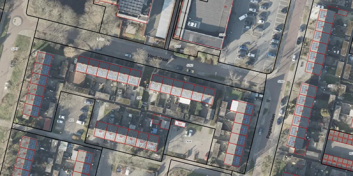 Het perceel waarop Verdistraat 7 staat heeft een oppervlakte van 5571 m². Dit is een zeer groot perceel. De perceeloppervlakte wordt geregistreerd door het Kadaster. Gedetailleerde informatie over de maten van dit perceel kunt u vinden in het rapport Kadastrale kaart met maatvoering van Verdistraat 7.