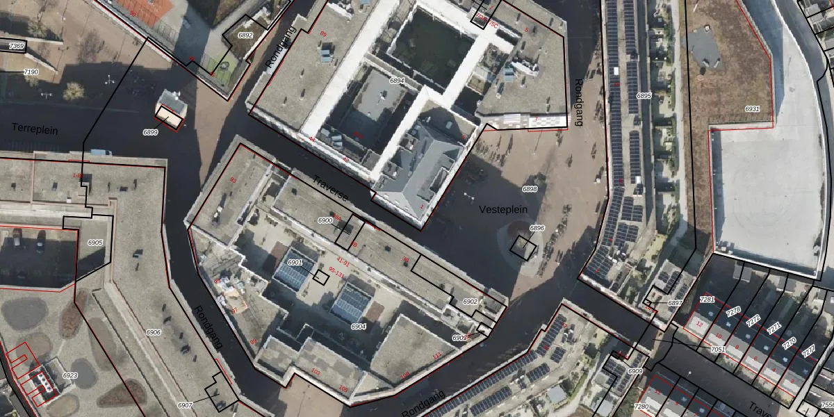 Het perceel waarop Vesteplein 1 staat heeft een oppervlakte van 2892 m². Dit is een zeer groot perceel. De perceeloppervlakte wordt geregistreerd door het Kadaster. Gedetailleerde informatie over de maten van dit perceel kunt u vinden in het rapport Kadastrale kaart met maatvoering van Vesteplein 1.