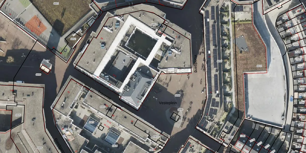 Het perceel waarop Vesteplein 5 staat heeft een oppervlakte van 2892 m². Dit is een zeer groot perceel. De perceeloppervlakte wordt geregistreerd door het Kadaster. Gedetailleerde informatie over de maten van dit perceel kunt u vinden in het rapport Kadastrale kaart met maatvoering van Vesteplein 5.