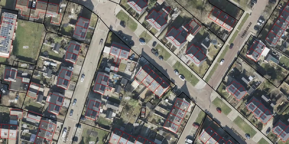 Het perceel waarop Violenstraat 12 staat heeft een oppervlakte van 4281 m². Dit is een zeer groot perceel. De perceeloppervlakte wordt geregistreerd door het Kadaster. Gedetailleerde informatie over de maten van dit perceel kunt u vinden in het rapport Kadastrale kaart met maatvoering van Violenstraat 12.