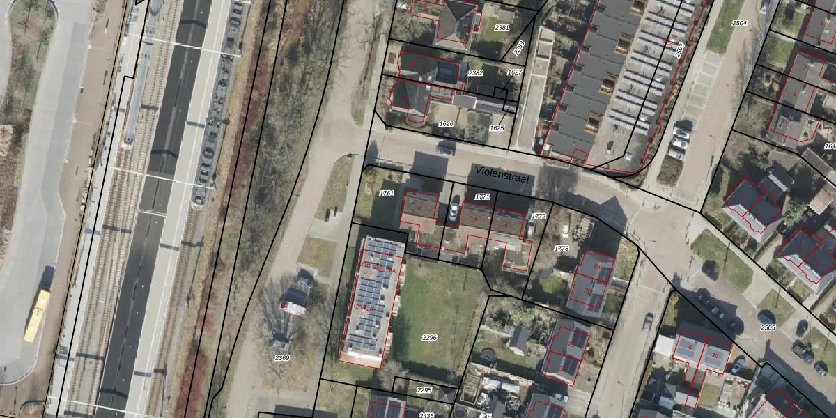Het perceel waarop Violenstraat 2 staat heeft een oppervlakte van 353 m². Dit is een groot perceel. De perceeloppervlakte wordt geregistreerd door het Kadaster. Gedetailleerde informatie over de maten van dit perceel kunt u vinden in het rapport Kadastrale kaart met maatvoering van Violenstraat 2.